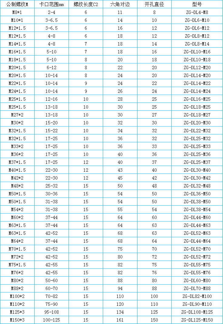 产品特性:特殊夹紧爪与夹紧圈密封相扣,配合迫紧螺帽,夹紧电缆范围大,