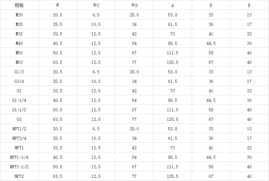 规格型号:M20-M63,G1/2-G2,NPT1/2-NPT2